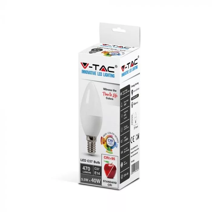 V-TAC LED izzó E14 C37 5.5W 200° CRI>95 6400K gyertya - 7496