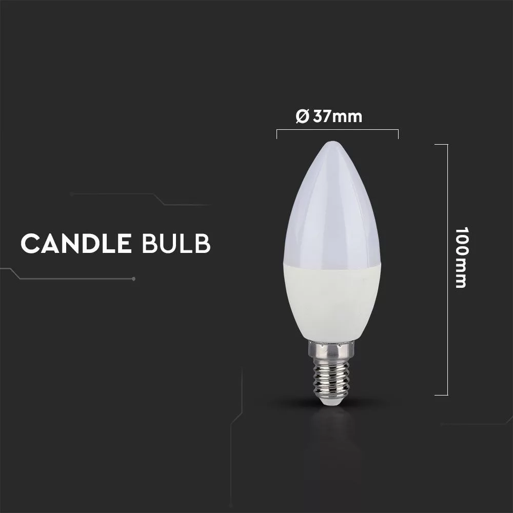 V-TAC LED izzó  E14 C37 5.5W 200° CRI>95 6400K gyertya - 7496