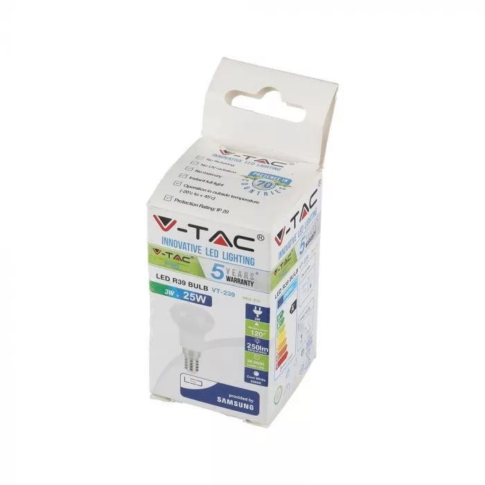 V-TAC LED izzó  E14 R39 2.9W 120° 6400K spot (Samsung Chip) - 21212