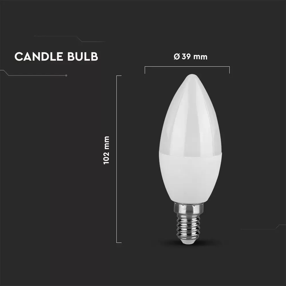 V-TAC LED izzó  csomag (3 db) E14 C37 4.5W 200° 6500K gyertya - 217265