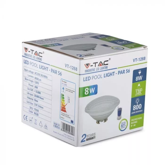 V-TAC LED spotlámpa medence lámpa távirányítóval PAR56 12W 12V 120° RGB IP68 kör - 7562