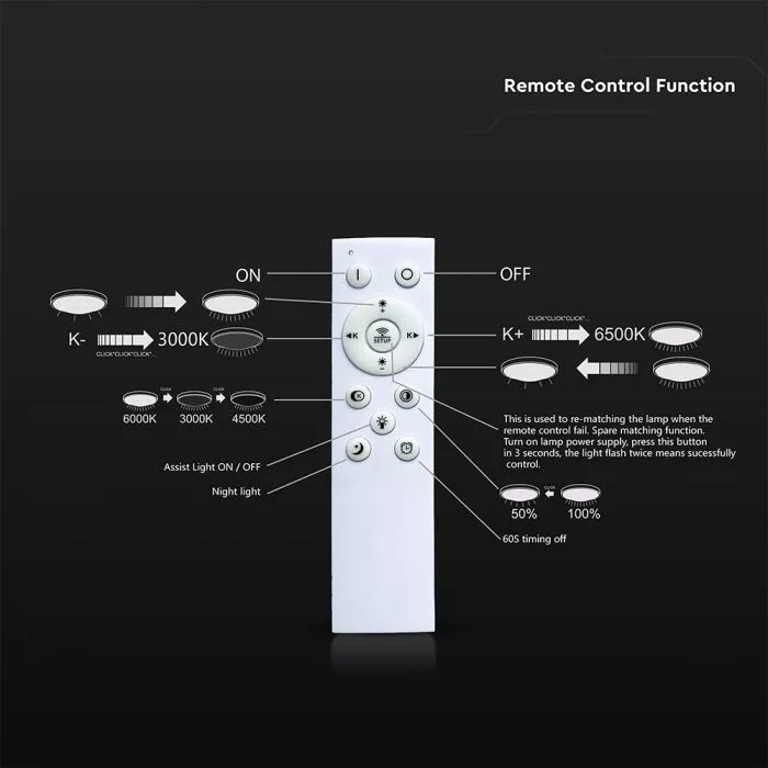 V-TAC LED mennyezeti lámpa - dimmelhető - 36W 3in1- fehér - 24139