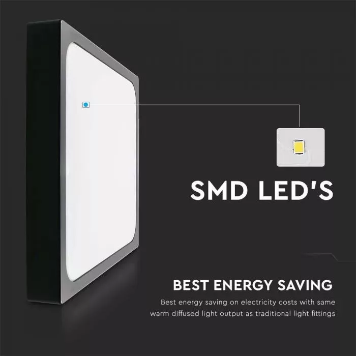 V-TAC LED mennyezeti lámpatest - fekete - 18W 4000K IP44 - 7643