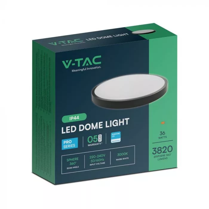 V-TAC LED mennyezeti lámpatest, fekete, kör alakú 36W 3000K IP44 (SAMSUNG CHIP) - 76391-24