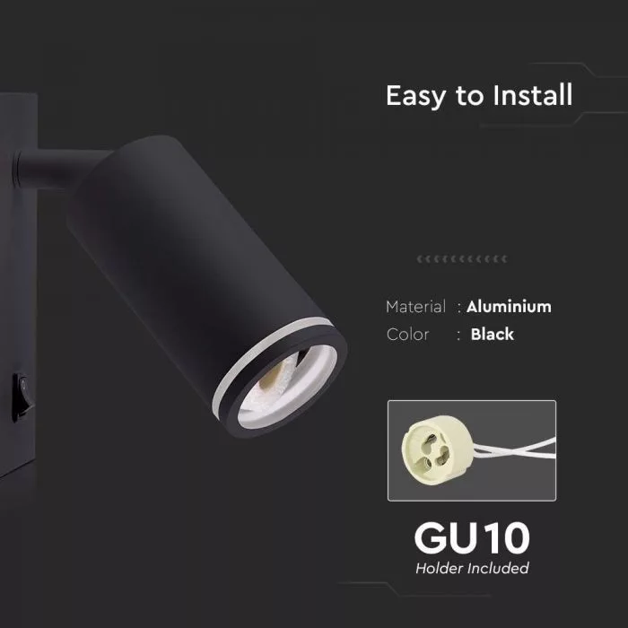 V-TAC Led 1 x GU10 falra szerelhető lámpatest - fekete - 10294