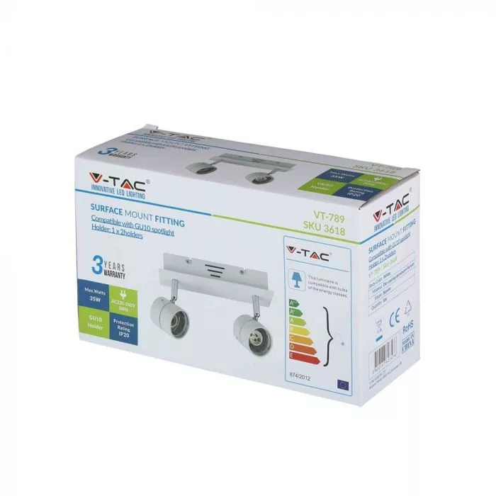 V-TAC Led 2 x GU10 Sín szerelvény Fehér - 3618
