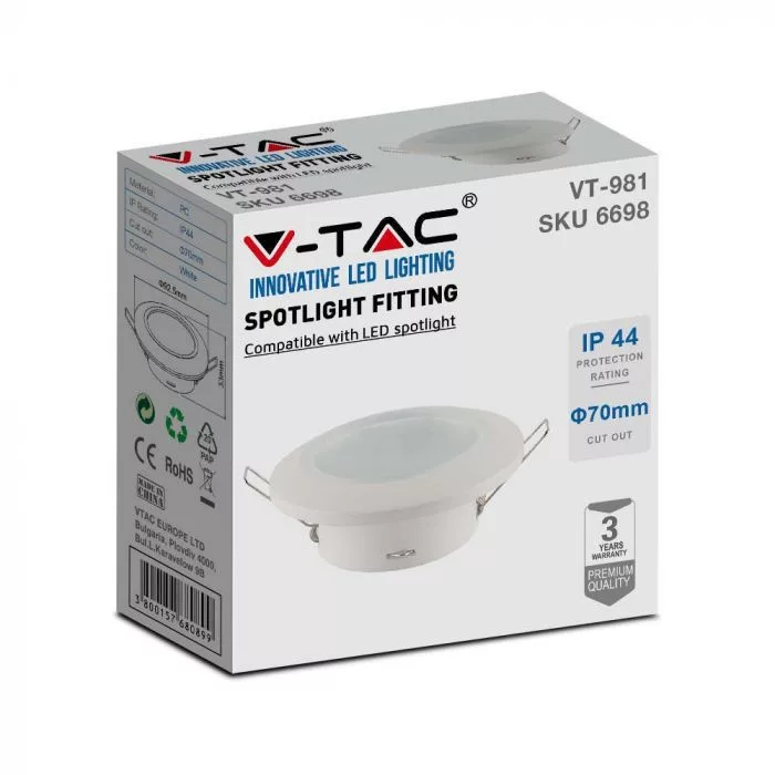 V-TAC Led GU10 Spot Keret kerek beépíthető - fehér - 6698