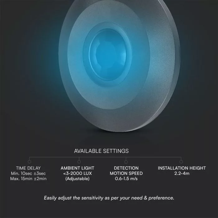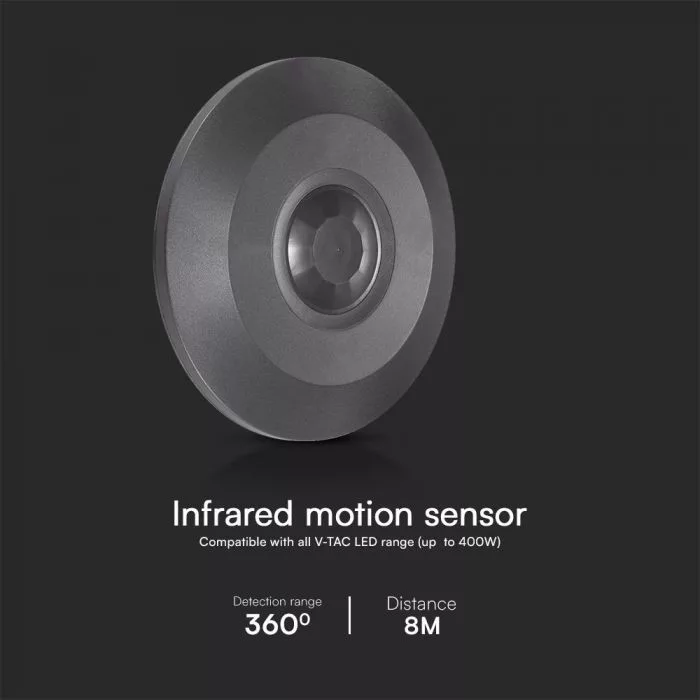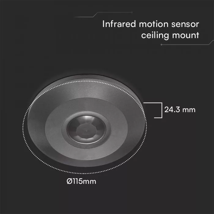 V-TAC Mennyezeti infravörös mozgásérzékelő 360° - Full fekete - 23677
