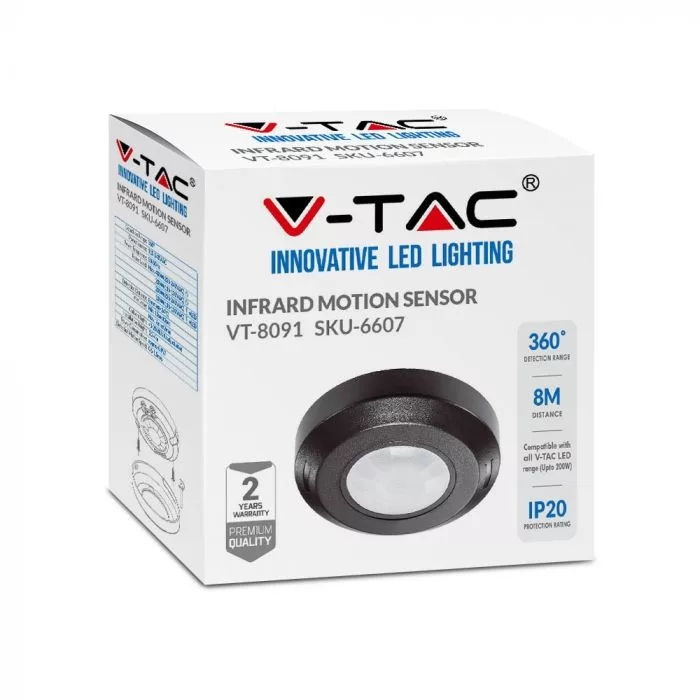 V-TAC Mennyezeti infravörös mozgásérzékelő 360° - fekete - 6607