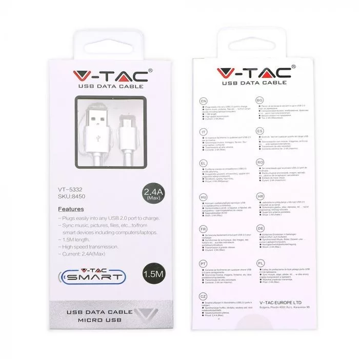 V-TAC Micro USB kábel 1,5m fehér - 8450
