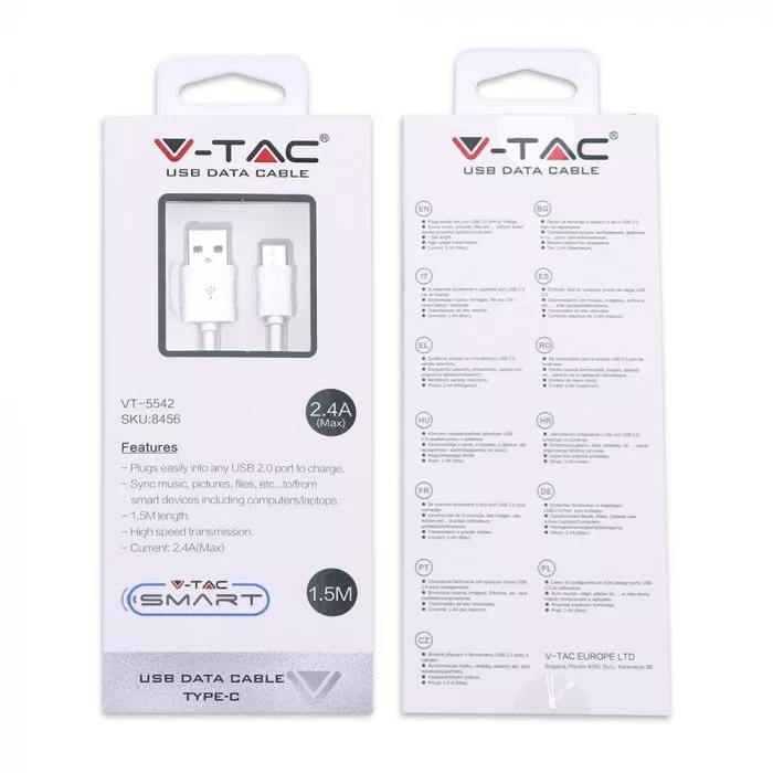 V-TAC USB "C" kábel 1,5m fehér - 8456