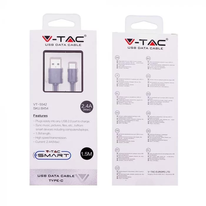 V-TAC USB "C" kábel 1,5m fekete - 8454