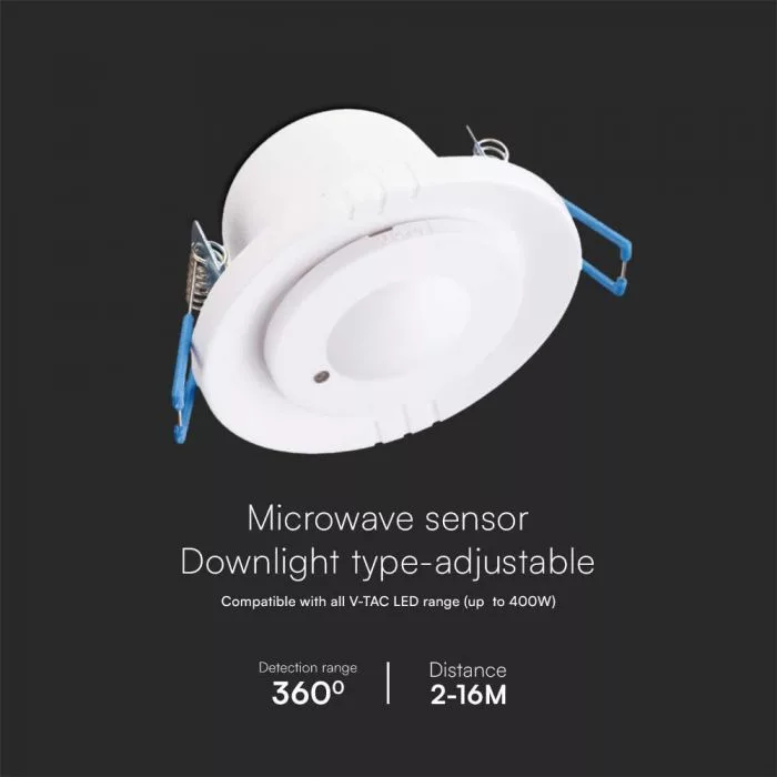 V-TAC beépíthető mikrohullámú mozgásérzékelő 360° fehér - 23165