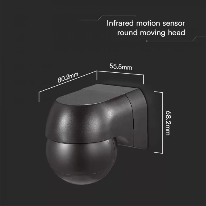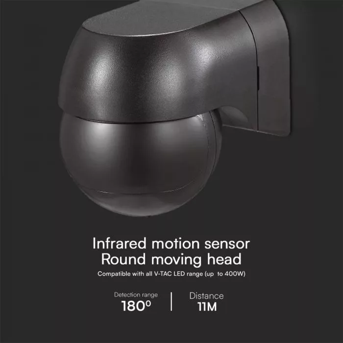 V-TAC infravörös mozgásérzékelő 180° IP44 - fekete - 23678