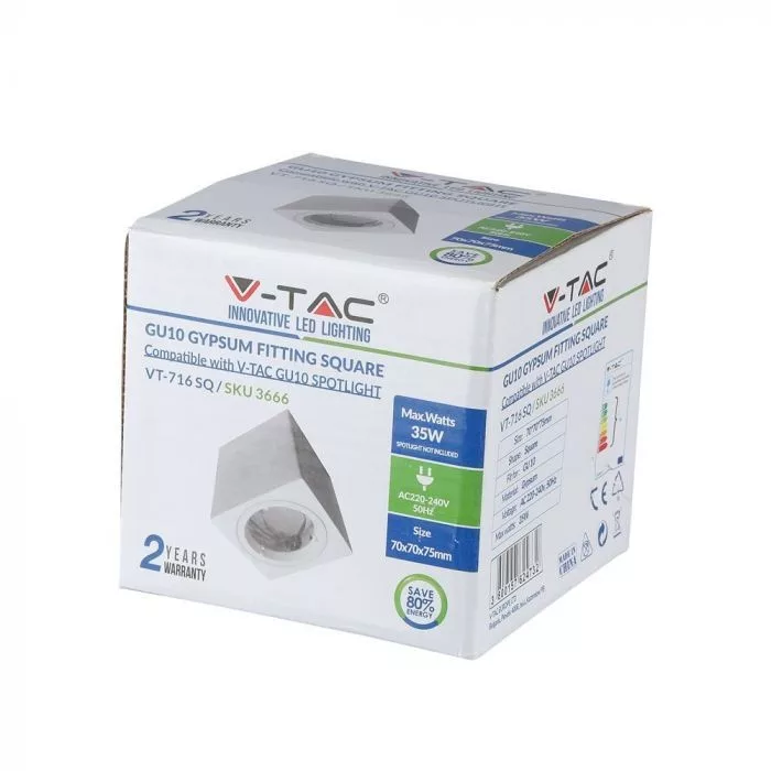 V-TAC négyzet alakú gipsz lámpatest - 3666