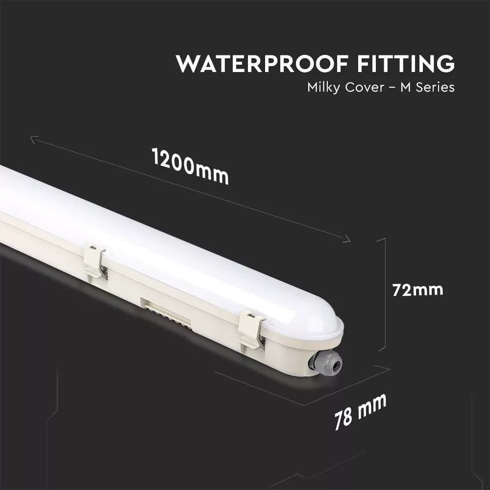 V-TAC 60W Vízálló LED armatúra tejfehér burával 120 cm 120° 120lm/W 6400K (Samsung Chip) IP65 - 20474