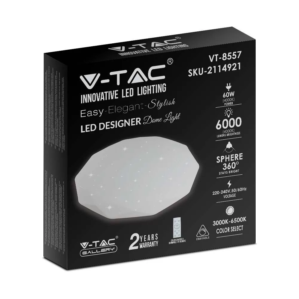 V-TAC Led mennyezeti lámpa csillagos búrával távirányítóval Φ500 30W/60W/30W - 2114921