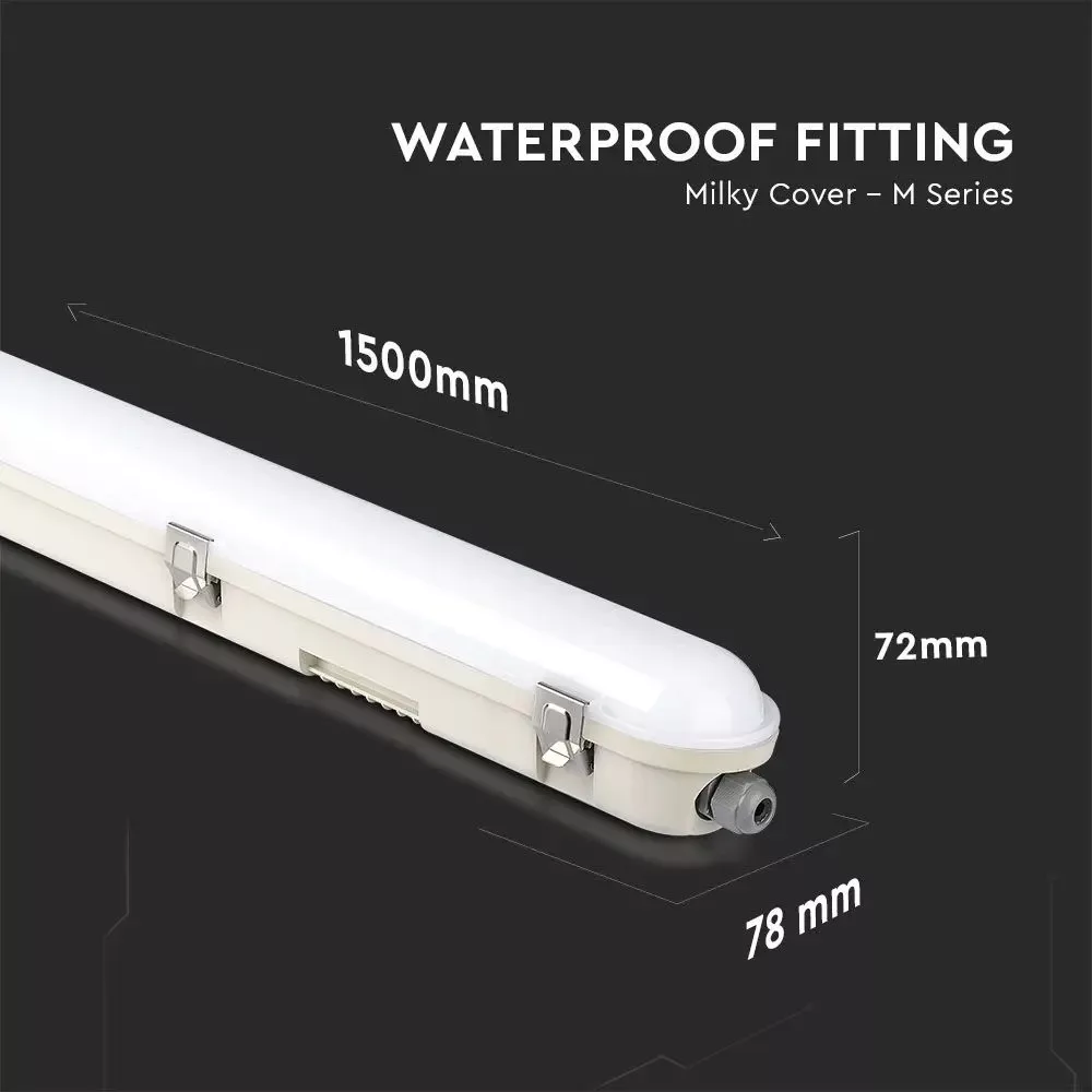 V-TAC 48W Vízálló LED armatúra tejfehér burával 150 cm 120° 120lm/W 6400K (Samsung Chip) IP65 - 2120214