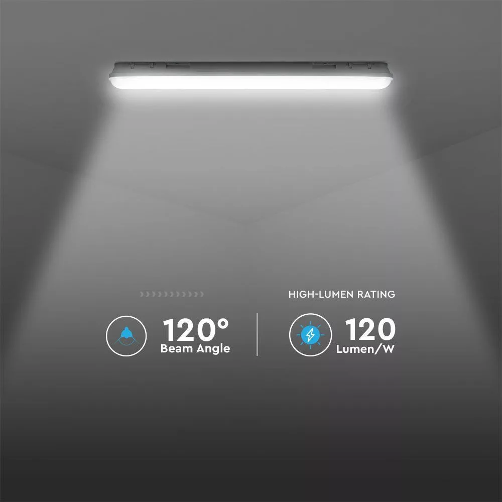 V-TAC 48W Vízálló LED armatúra tejfehér burával 150 cm 120° 120lm/W 4000K (Samsung Chip) IP65 - 2120221