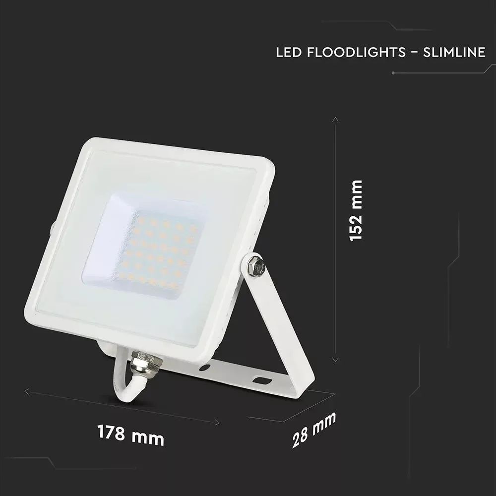 V-TAC 30W LED reflektor 100° 4000K fehér házas (Samsung Chip) - 21404