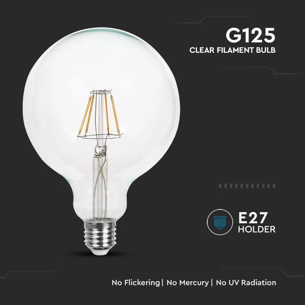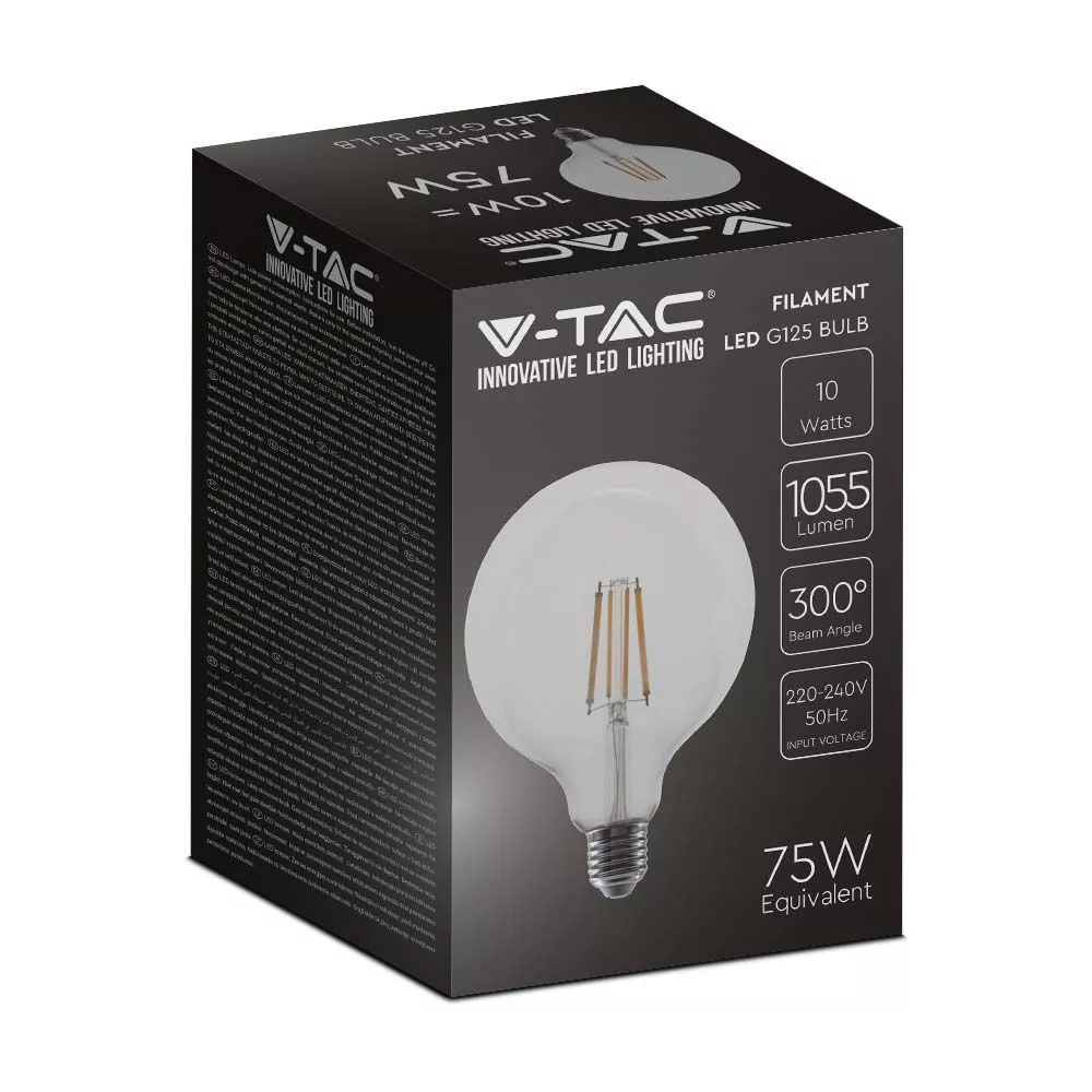 V-TAC Átlátszó LED izzó filament COG  E27 G125 10W 3000K nagygömb - 214422