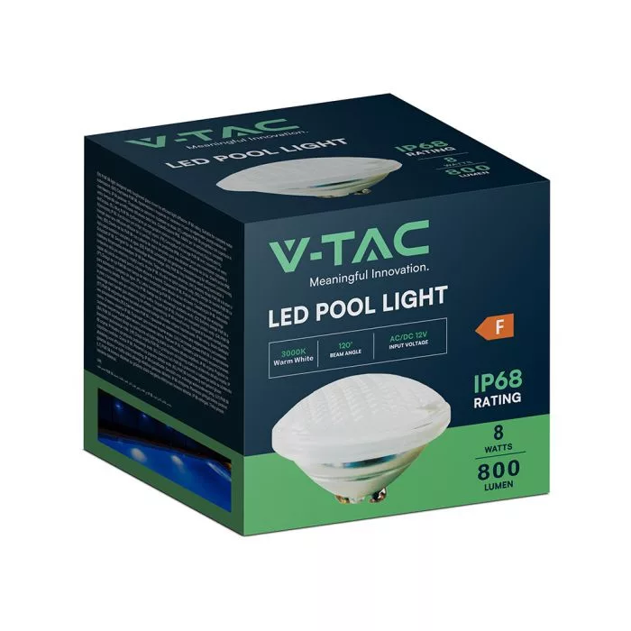 V-TAC LED medence lámpa PAR56 8W 12V 120° 3000K IP68 - 217556