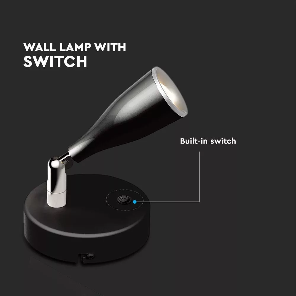 V-TAC LED 4.5W mennyezeti lámpa kapcsolóval - fekete - 4000K - 218678