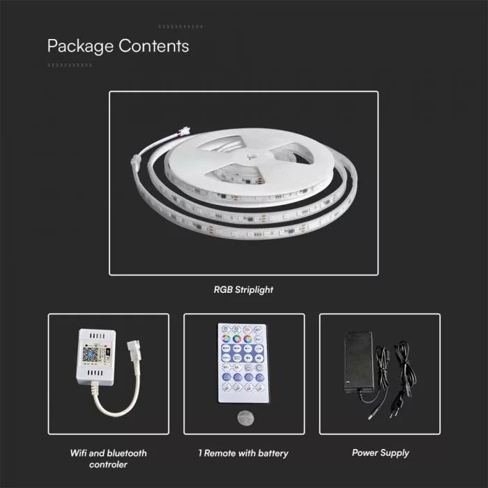 V-TAC Okos magic RGB LED szalag szett SMD5050 60LED/M 13W/M 24V IP65 RGB - 23146