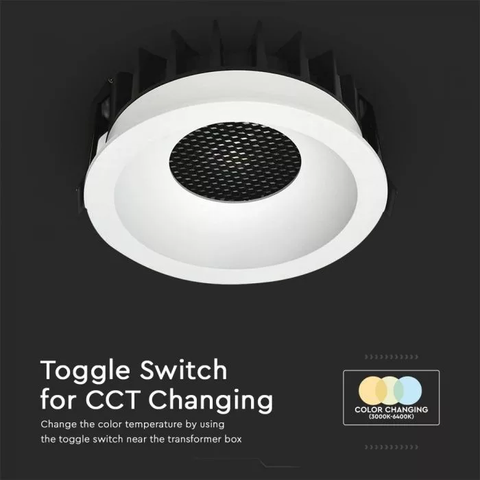 V-TAC Led beépíthető mélysugárzó COB -Méhsejt kialakítású 12W 3in1 - 23672