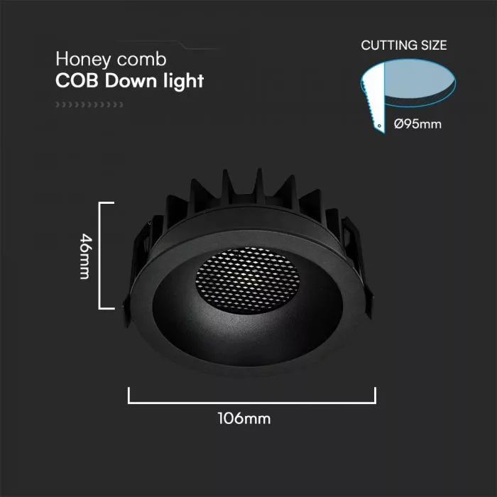 V-TAC Led beépíthető mélysugárzó COB -Méhsejt kialakítású 18W 3in1 - 23673