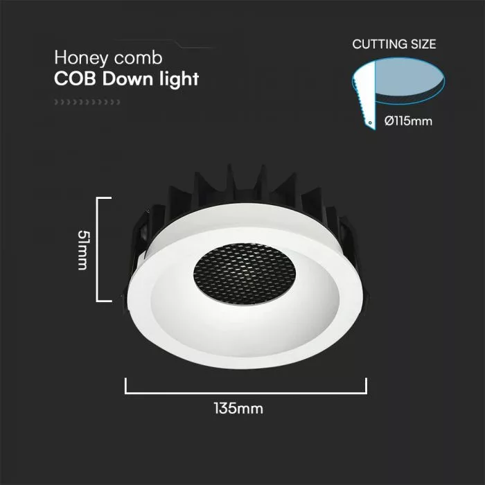 V-TAC Led beépíthető mélysugárzó COB -Méhsejt kialakítású 24W 3in1 - 23676