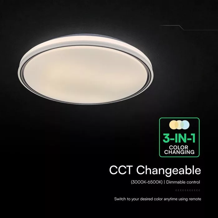 V-TAC 30W / 60W / 30W mennyezeti lámpa, távirányítható, dimmelhető fekete - 24202