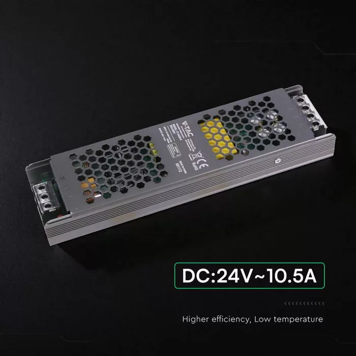 V-TAC LED Fémházas szerelhető SLIM tápegység 250W 10.5A 24V IP20 - 24241