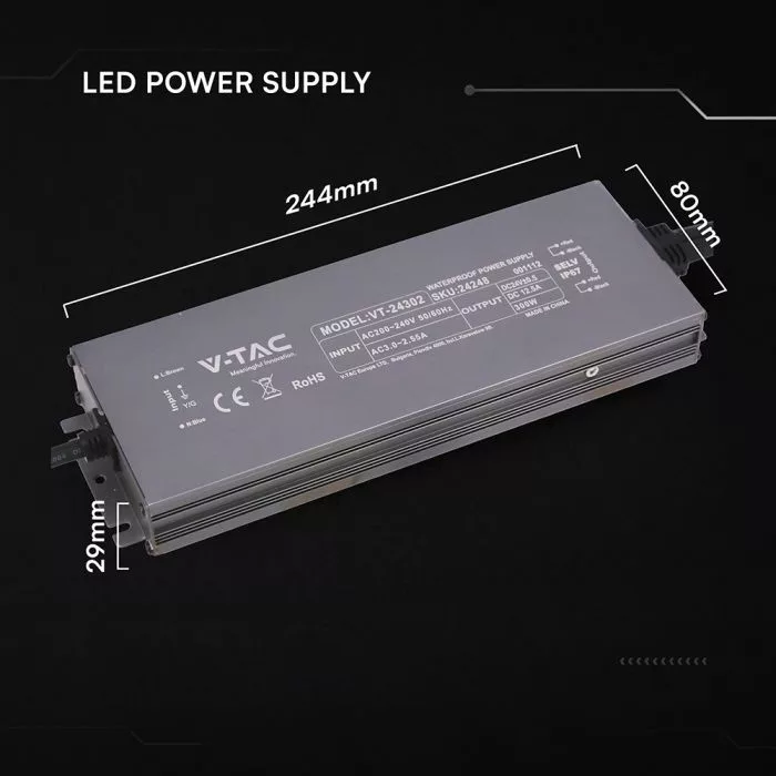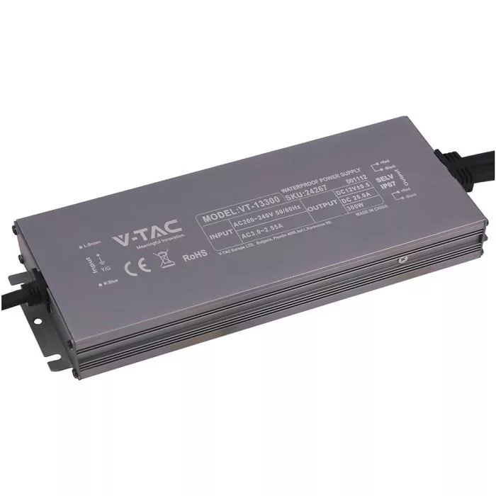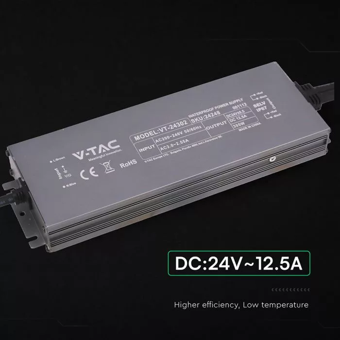 V-TAC LED Fémházas szerelhető vízálló tápegység 300W 12.5A 24V IP67 - 24248