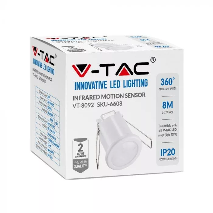 V-TAC beépíthető infravörös mozgásérzékelő 360° - fehér - 6608