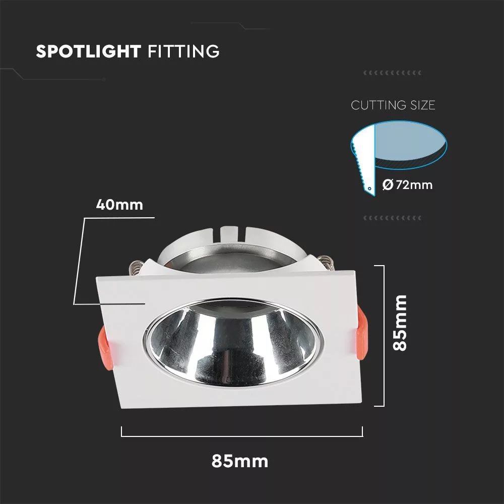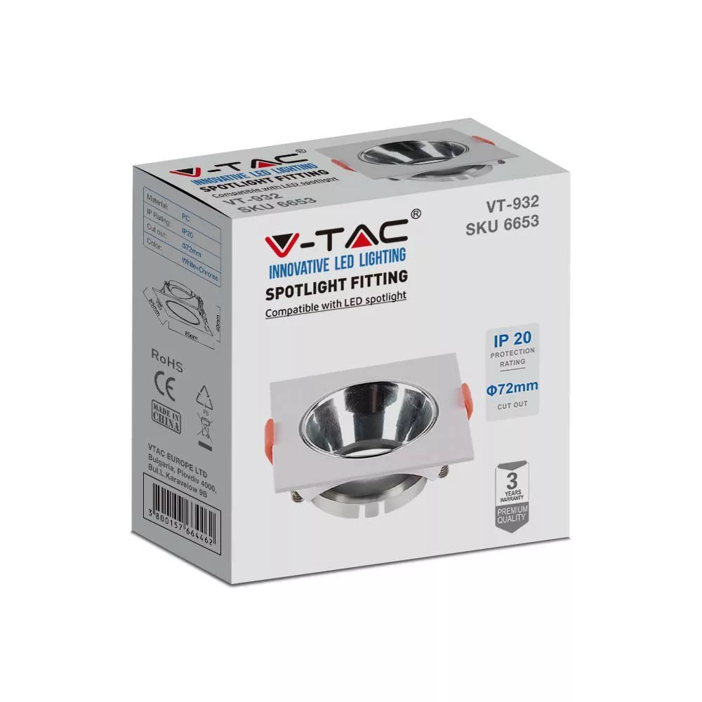 V-TAC Led GU10 Spot Keret négyzet beépíthető - fehér + króm- 6653