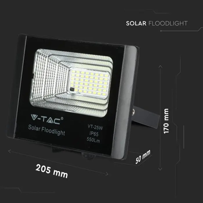 V-TAC 20W LED napelemes (SOLAR) reflektor távirányítóval 120° 4000K fekete házas - 6971
