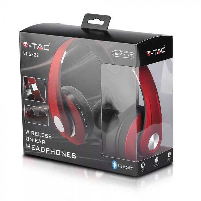 V-TAC Bluetoothos vezeték nélküli fejhallgató állítható fej 500mAh piros - 7731