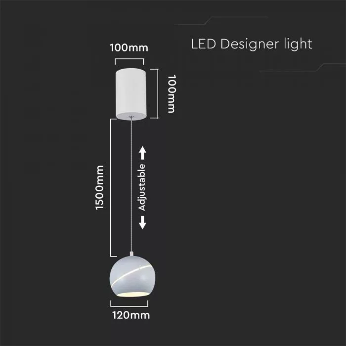 V-TAC LED Függeszték lámpa 8.5W Érintő kapcsolóval - fehér  - 3000K - 8002