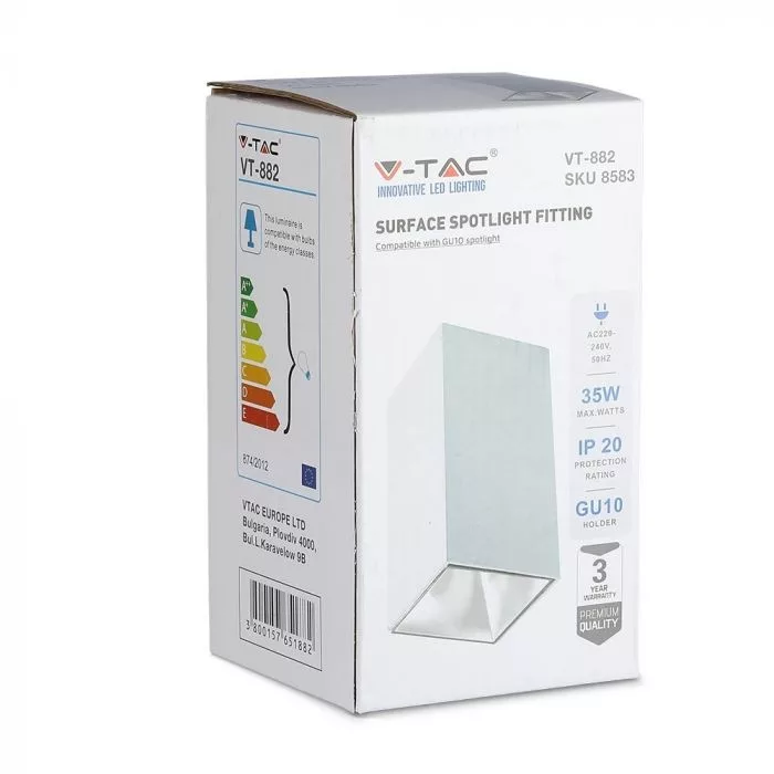 V-TAC Led GU10 Spot Falon kívüli keret téglalap forma - fehér - 8583