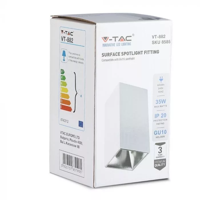 V-TAC Led GU10 Spot Falon kívüli keret téglalap forma - fehér,króm - 8585